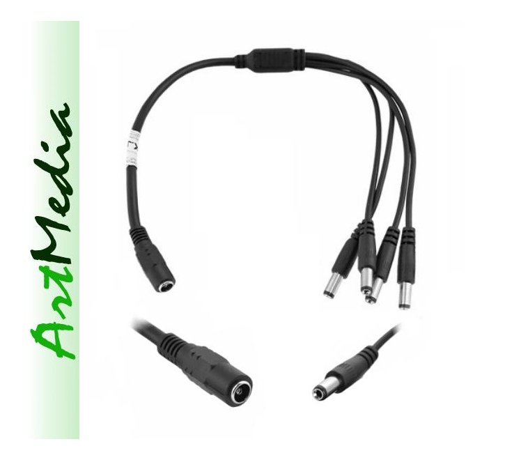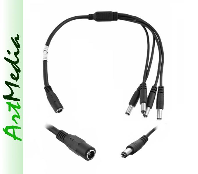 ..................................................................................................................................... kabel połączeniowy rozgałęźnik zasilania DC z gniazda 2,1 x 5,5 na 4 wtyki 2.1 x 5.5 długość kabla około 0,2 m .