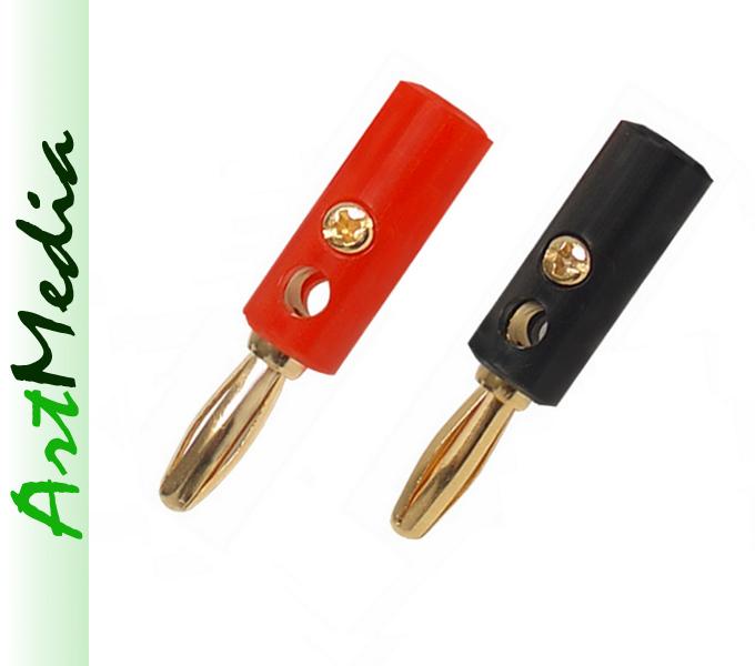wtyk bananowy złocony, czerwony - czarny - 2 szt.