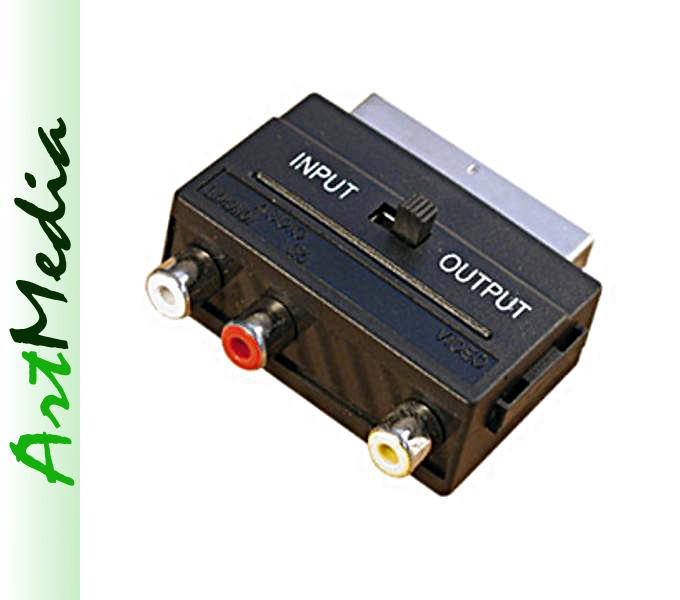 Adapter jest przejściówką ze złącza SCART na RCA i odwrotnie.