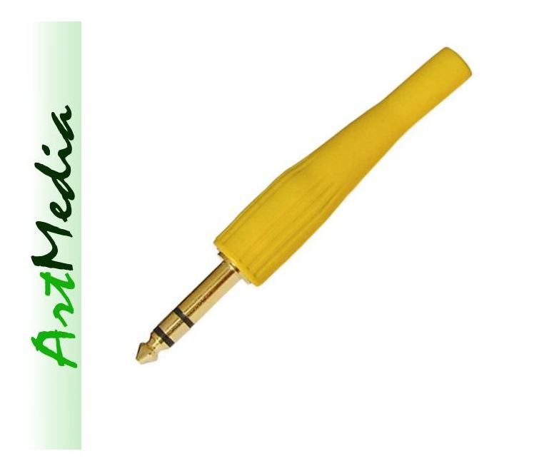 wtyk Jack 6,3 stereo złocony , żółta osłona