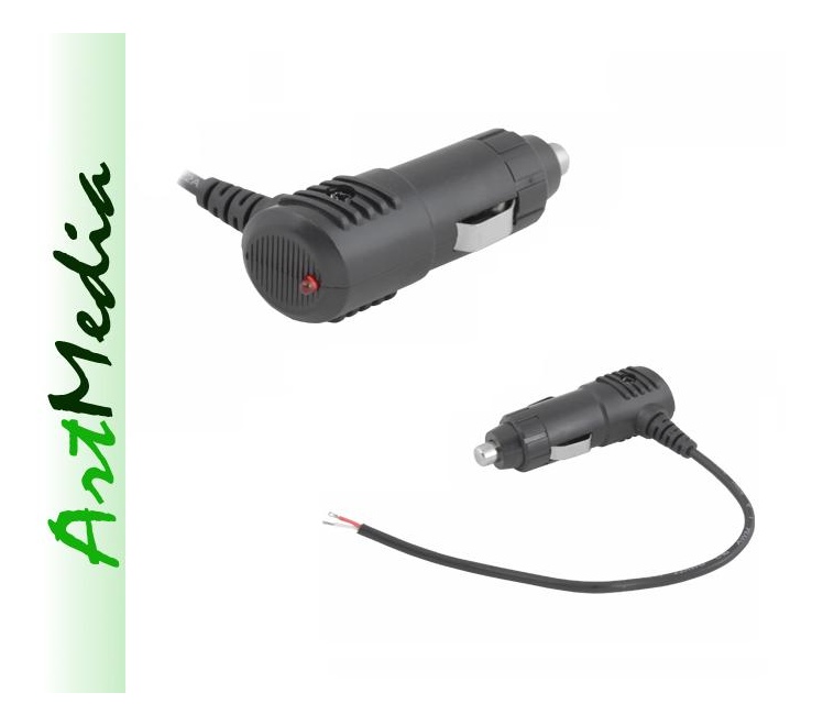 wtyk zapalniczki, bezpiecznik, dioda LED, z kablem