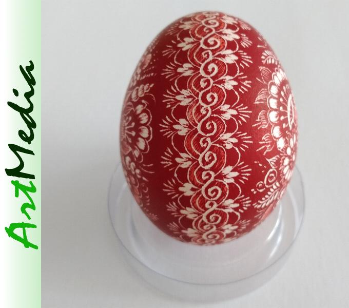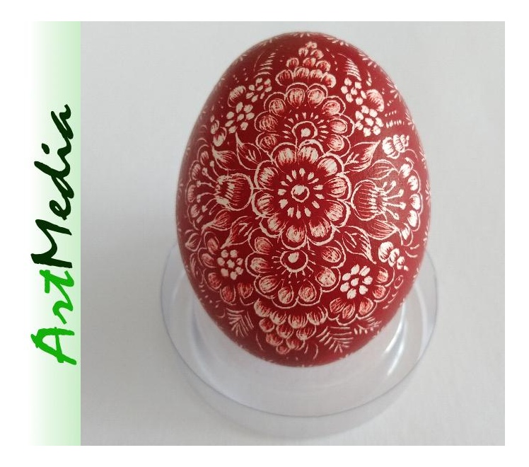 Wyrób wykonany na skorupie, wydmuszce jaja kurzego, metodą rytowniczą.