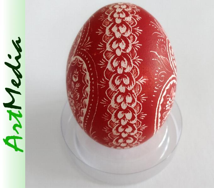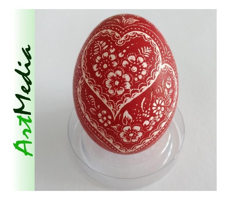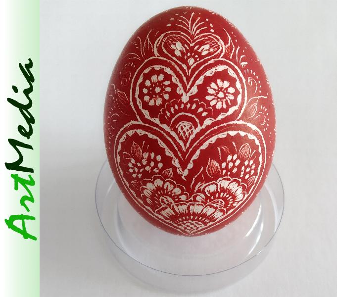 Wyrób wykonany na skorupie, wydmuszce jaja kurzego, metodą rytowniczą.