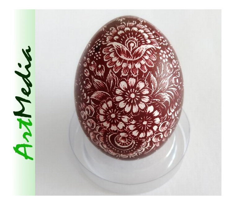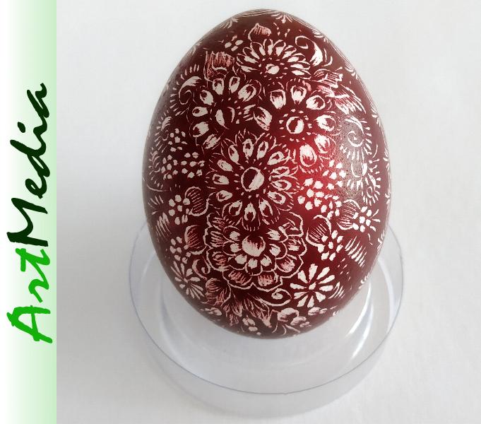 Wyrób wykonany na skorupie, wydmuszce jaja kurzego, metodą rytowniczą.