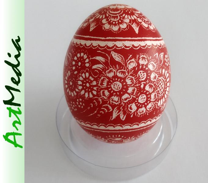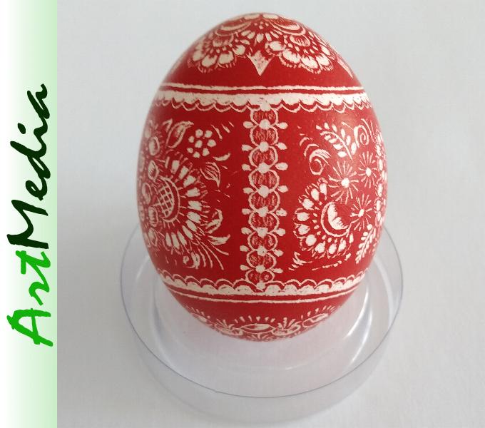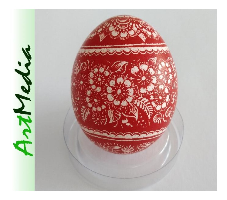 Wyrób wykonany na skorupie, wydmuszce jaja kurzego, metodą rytowniczą.