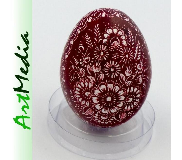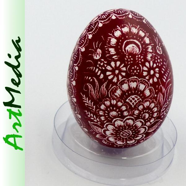 Wyrób wykonany na skorupie, wydmuszce jaja kurzego, metodą rytowniczą.