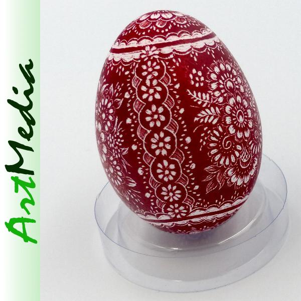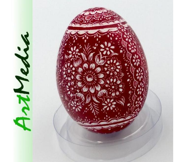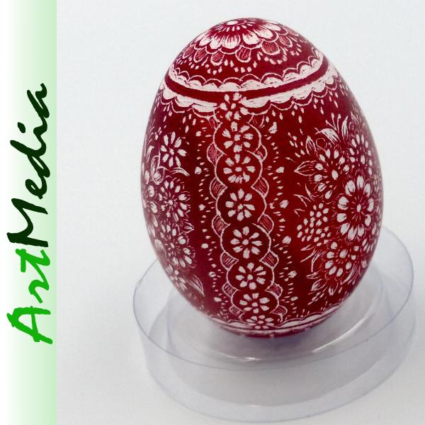 Wyrób wykonany na skorupie, wydmuszce jaja kurzego, metodą rytowniczą.