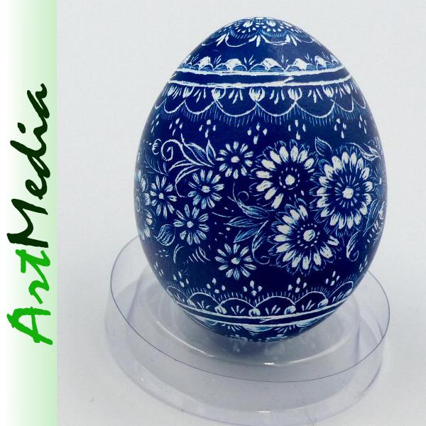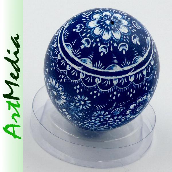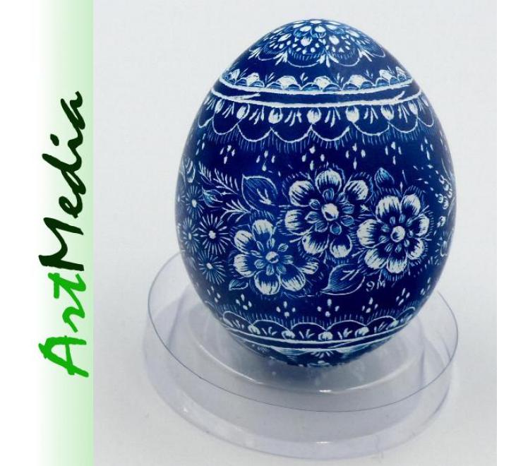 Wyrób wykonany na skorupie, wydmuszce jaja kurzego, metodą rytowniczą.