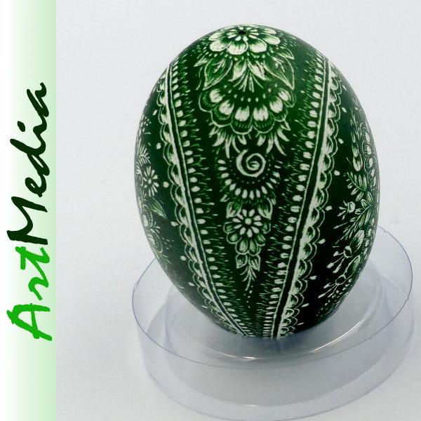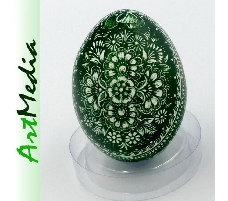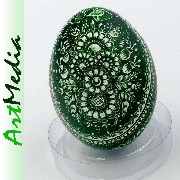 Wyrób wykonany na skorupie, wydmuszce jaja kurzego, metodą rytowniczą.