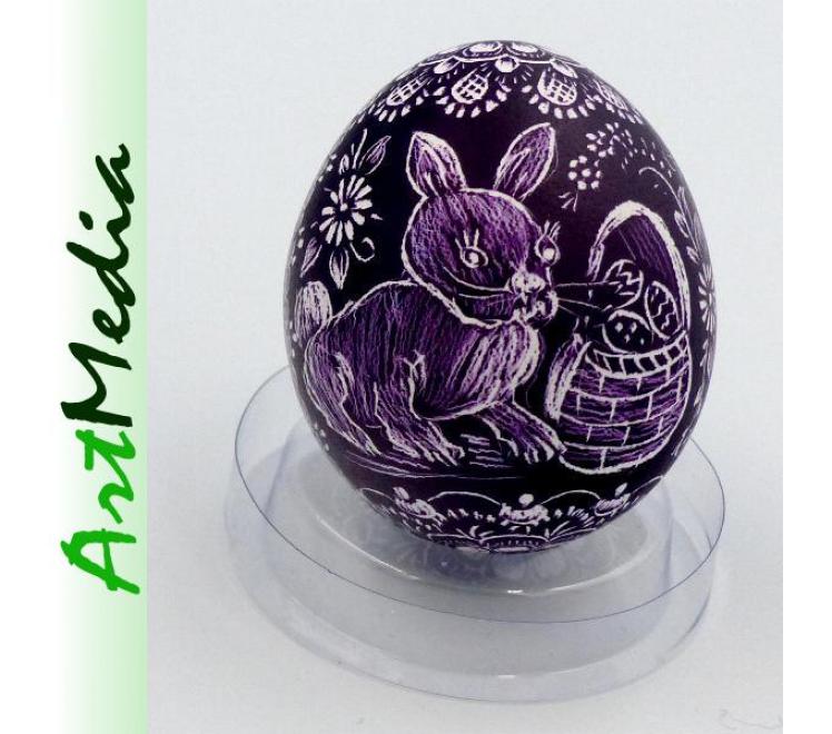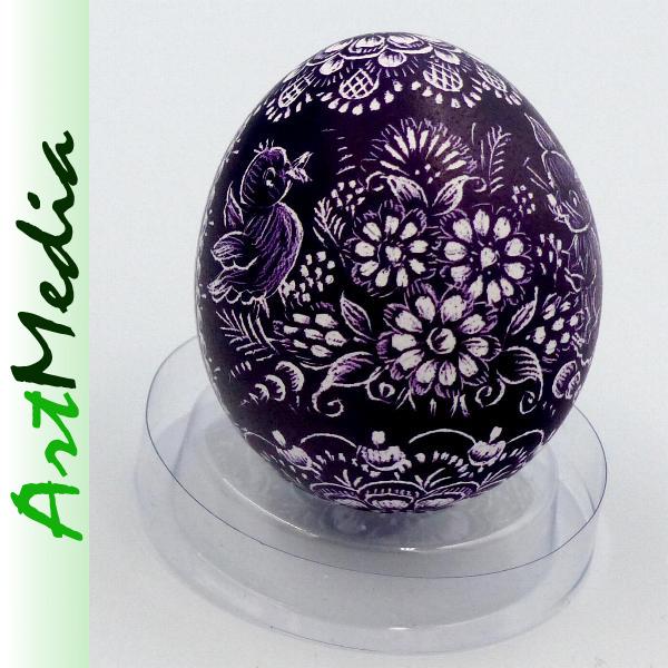 Wyrób wykonany na skorupie, wydmuszce jaja kurzego, metodą rytowniczą.