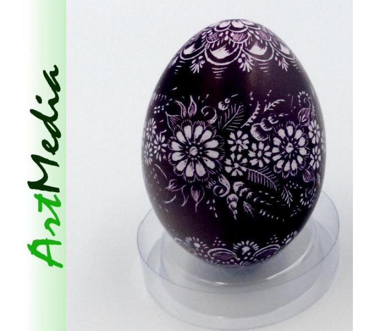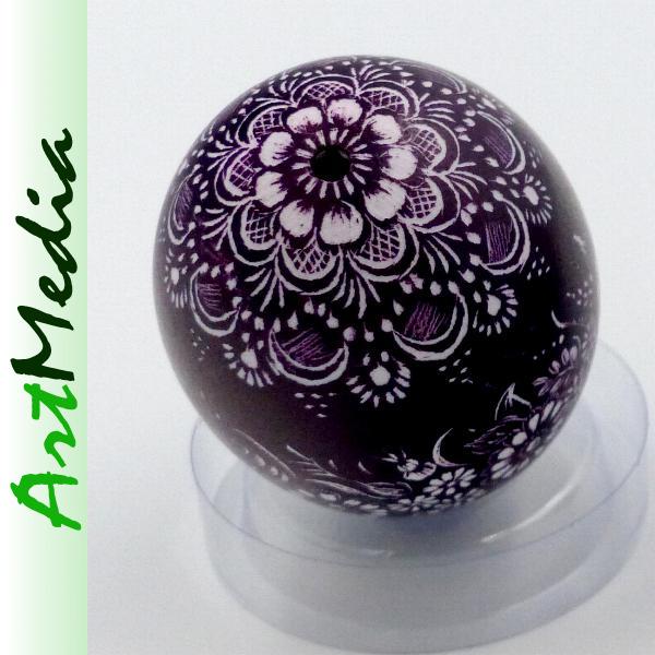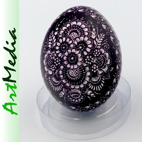Wyrób wykonany na skorupie, wydmuszce jaja kurzego, metodą rytowniczą.