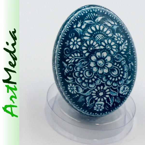 Wyrób wykonany na skorupie, wydmuszce jaja kurzego, metodą rytowniczą.