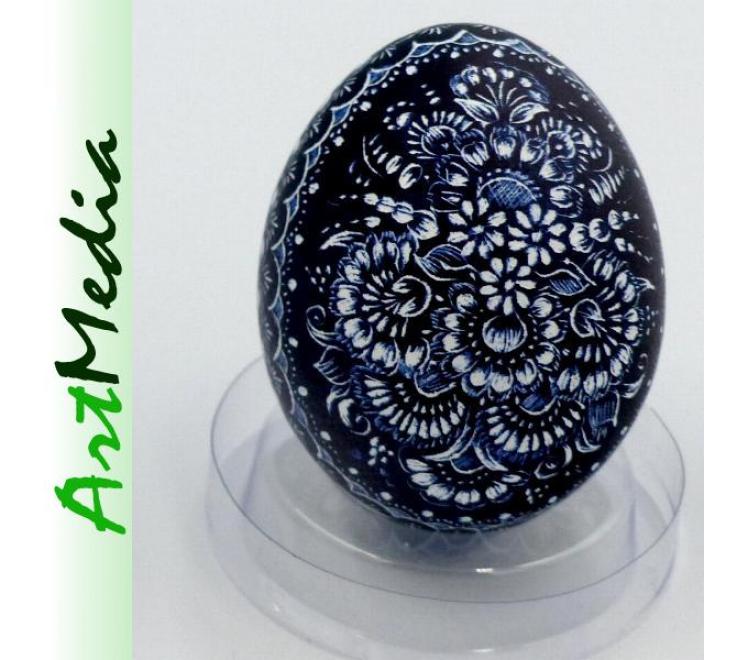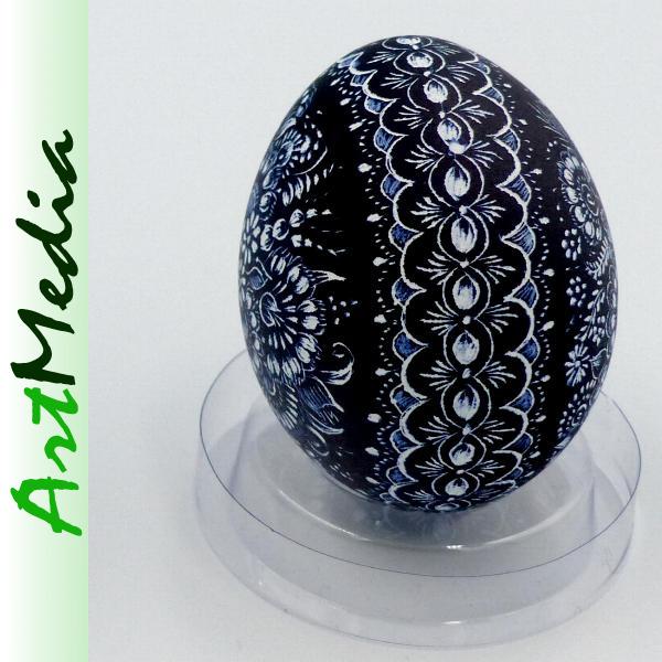 Wyrób wykonany na skorupie, wydmuszce jaja kurzego, metodą rytowniczą.