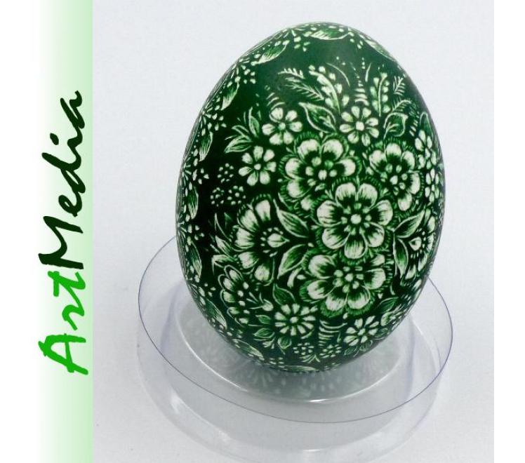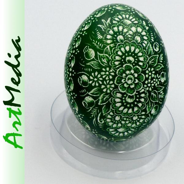 Wyrób wykonany na skorupie, wydmuszce jaja kurzego, metodą rytowniczą.