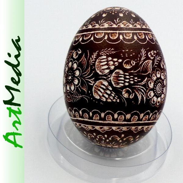 Wyrób wykonany na skorupie, wydmuszce jaja kurzego, metodą rytowniczą.