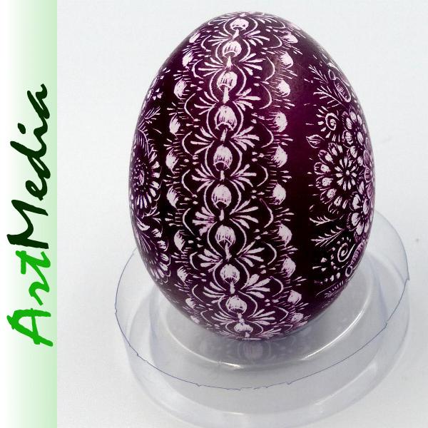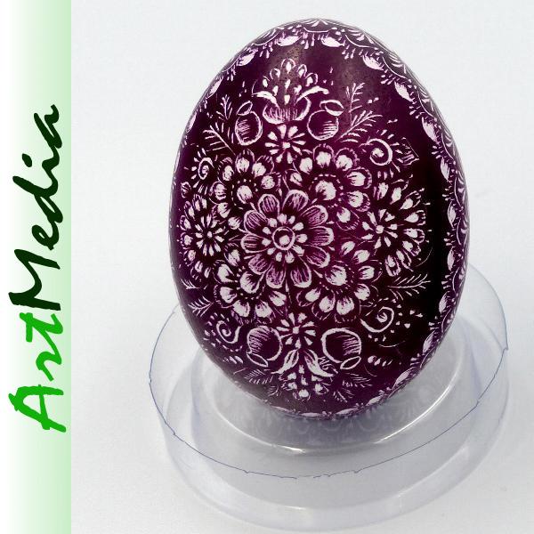 Wyrób wykonany na skorupie, wydmuszce jaja kurzego, metodą rytowniczą.