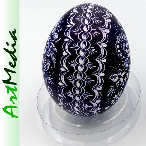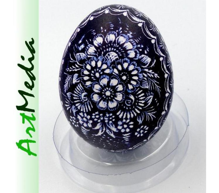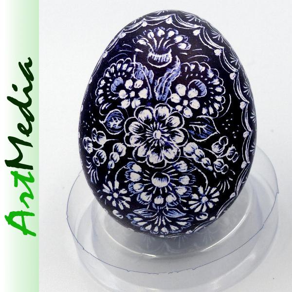 Wyrób wykonany na skorupie, wydmuszce jaja kurzego, metodą rytowniczą.