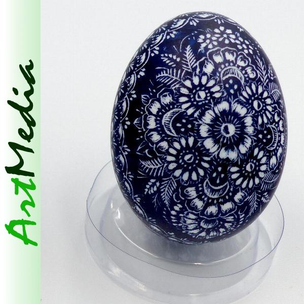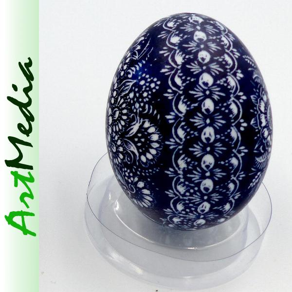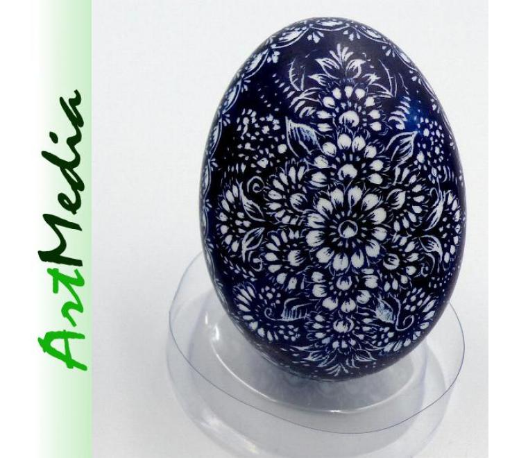 Wyrób wykonany na skorupie, wydmuszce jaja kurzego, metodą rytowniczą.