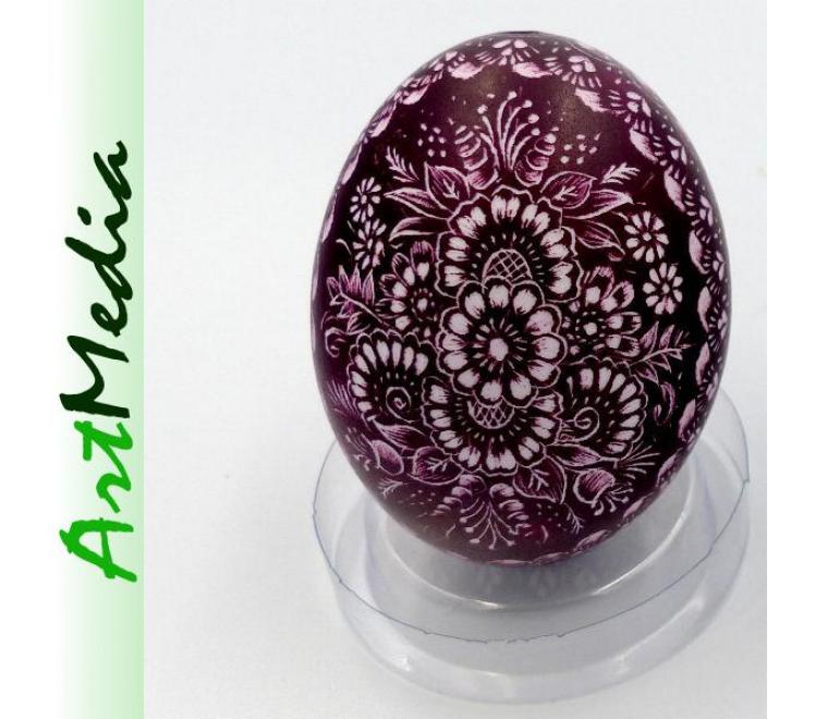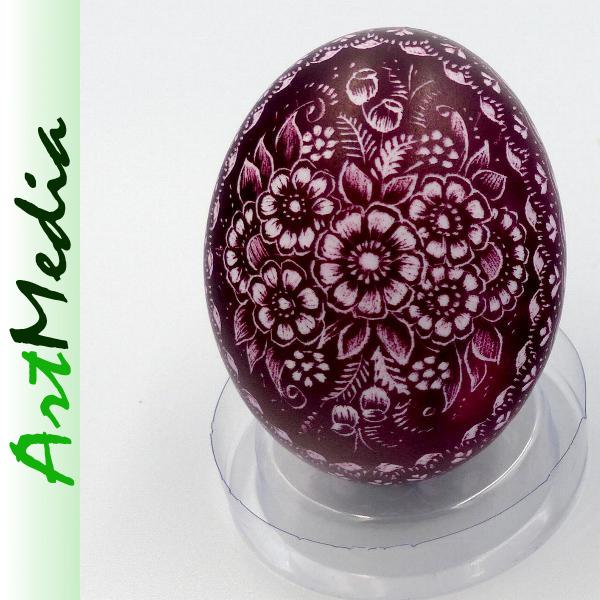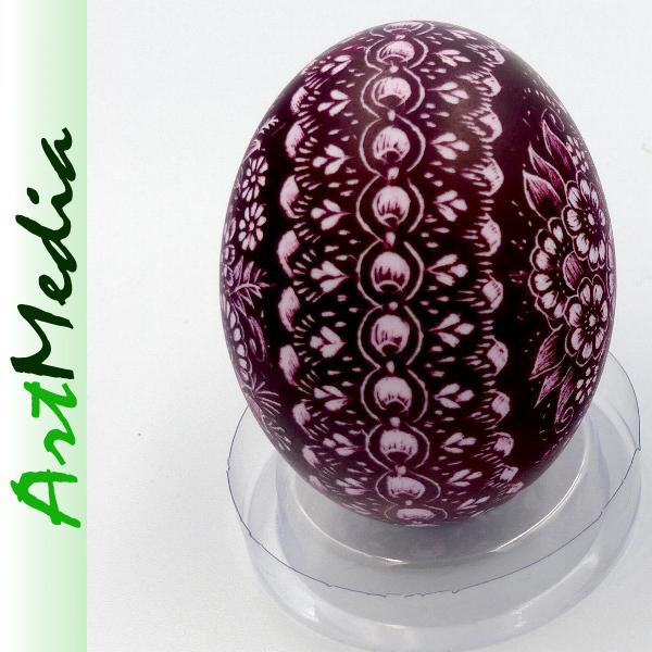 Wyrób wykonany na skorupie, wydmuszce jaja kurzego, metodą rytowniczą.