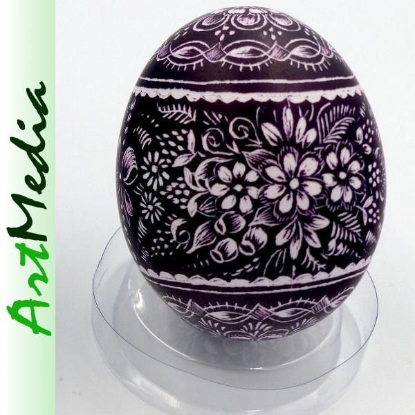 Wyrób wykonany na skorupie, wydmuszce jaja kurzego, metodą rytowniczą.