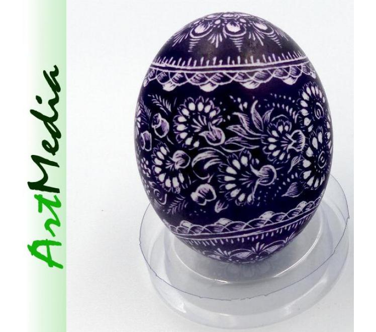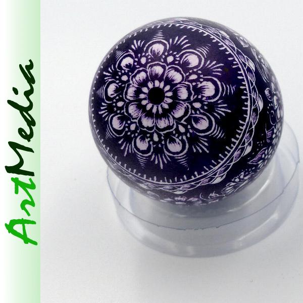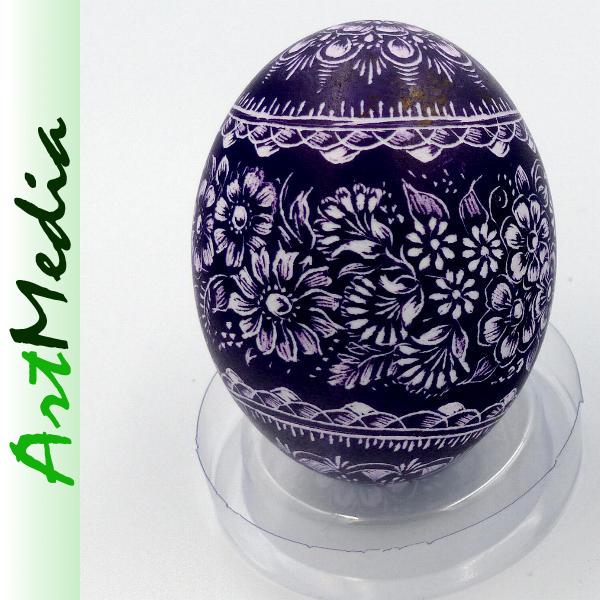 Wyrób wykonany na skorupie, wydmuszce jaja kurzego, metodą rytowniczą.