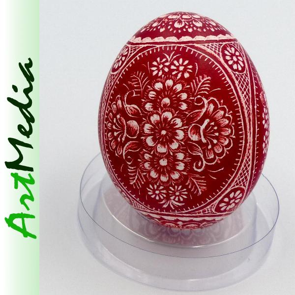 Wyrób wykonany na skorupie, wydmuszce jaja kurzego, metodą rytowniczą.
