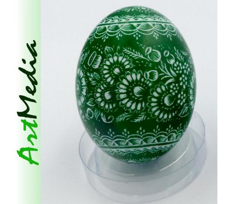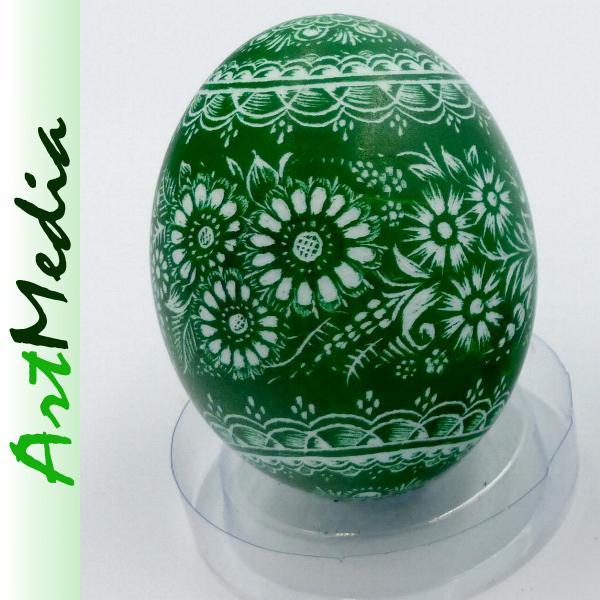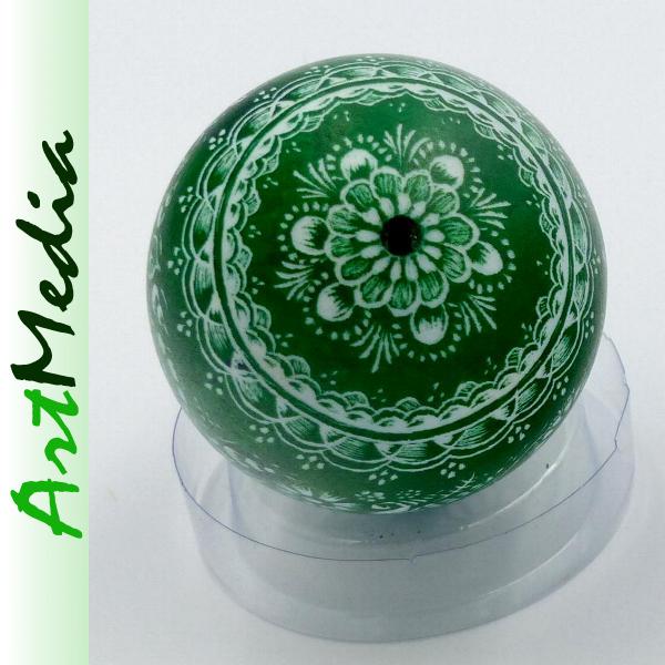 Wyrób wykonany na skorupie, wydmuszce jaja kurzego, metodą rytowniczą.