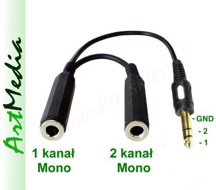 kabel, adapter, rozgałęźnik wtyk Jack 6,3 mm Stereo na 2 gniazda Jack 6,3 Mono długość kabla: około 0,1 - 0,2 m . przewody ekranowane .