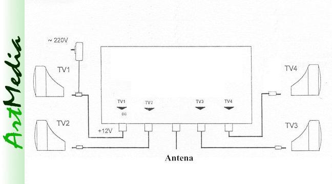 czterech odbiorników TV. Rozdzielacz posiada regulację, która