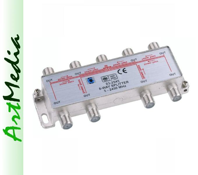 Rozgałęźnik pozwala na rozdzielenie sygnału na 8 TV ponadto umożliwia doprowadzenie napięcia przez spliter