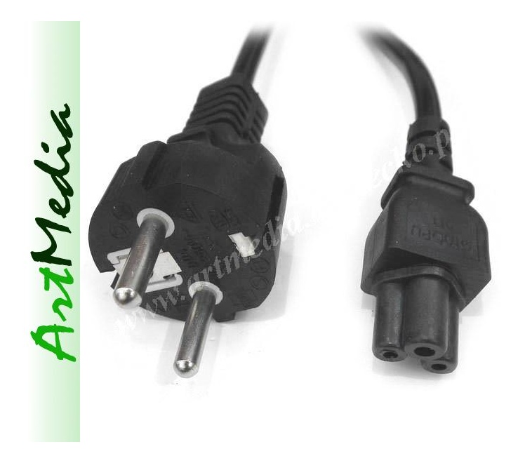 kabel sieciowy zasilający do laptopa - koniczynka 230V / 10A / długość 1,5 m .