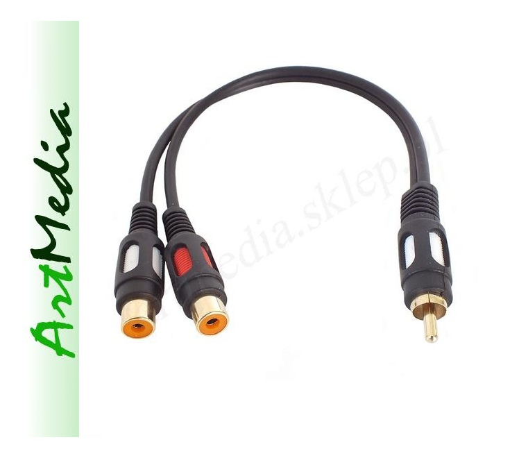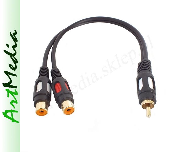 Przewód rozdziela sygnał ze wtyku na dwa gniazda RCA chinch.