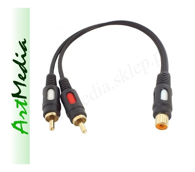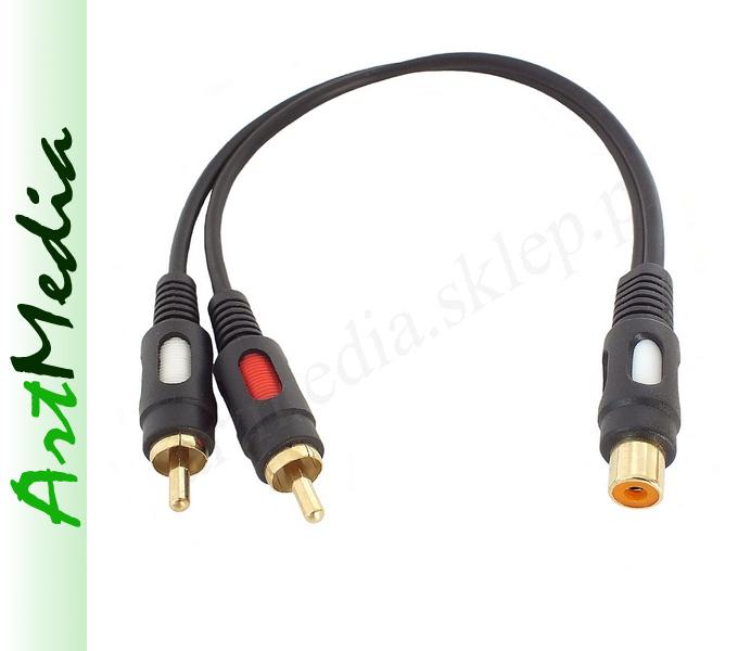 Przewód rozdziela sygnał z gniazda na dwa wtyki RCA chinch.