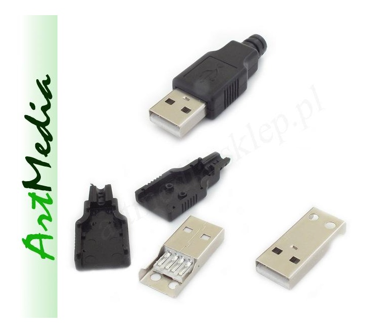 wtyk składany na kabel USB typu A 4 PIN w obudowie
